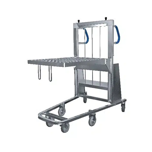 Desserte emboitable à fond auto-elevateur, produit spécial pour le domaine agroalimentaire.