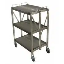 Desserte cuisine inox, pour le transport des produits alimentaires et divers ustensiles dans le domaine CHR, essentiellement gastronomique.