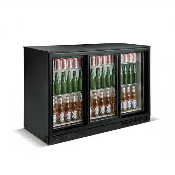 Desserte réfrigérée arrière de bar, 3 portes battantes, couleur noir, 338 L