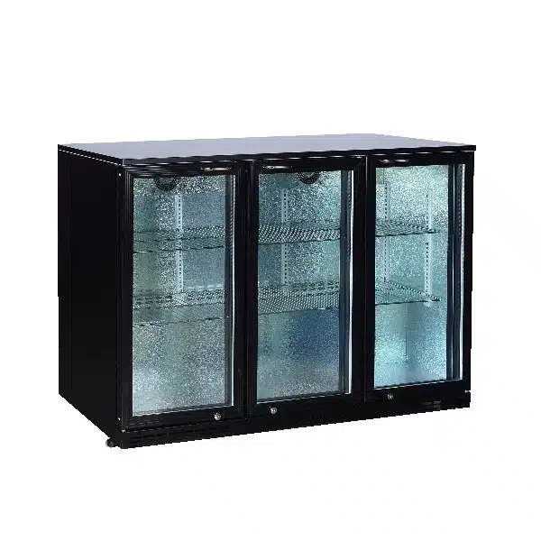 Desserte réfrigérée arrière de bar 3 portes battantes vitrées Skin plate noir