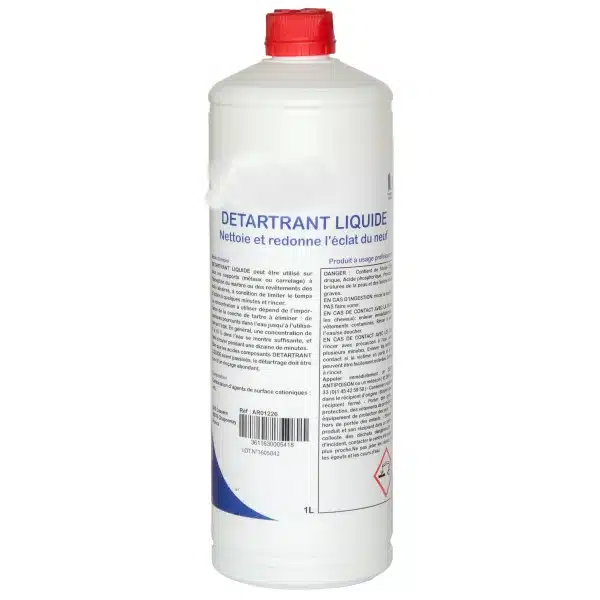 Détartrant liquide 1L, nettoie et redonne de l’éclat à vos matériels de cuisine- Produit à usage professionnel.