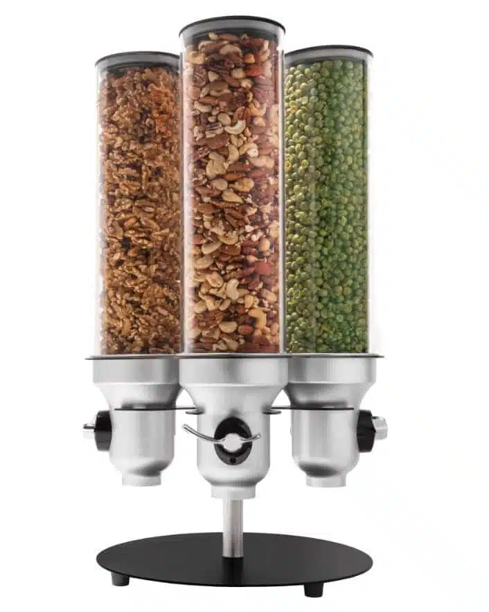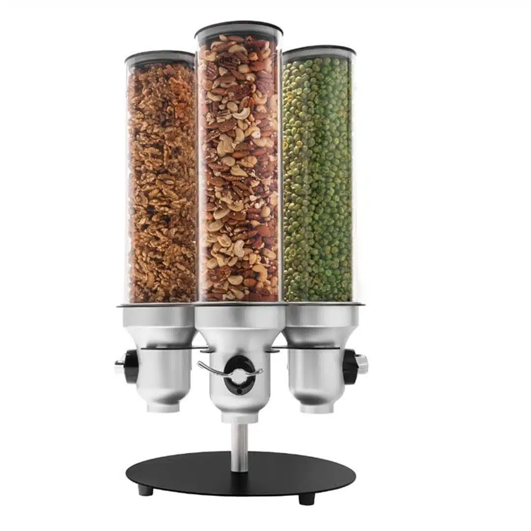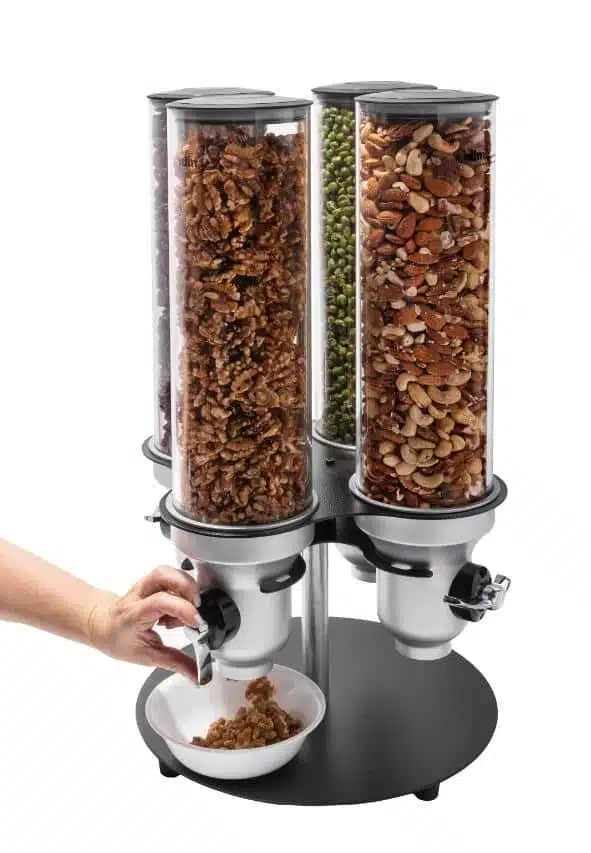 Distributeur d’aliments secs, 4 conteneurs, idéal pour toutes sortes de céréales, granola, légumineuses, noix, haricots, graines, grains de café, herbes, bonbons, pépites de chocolat, aliments pour animaux, matériaux industriels…