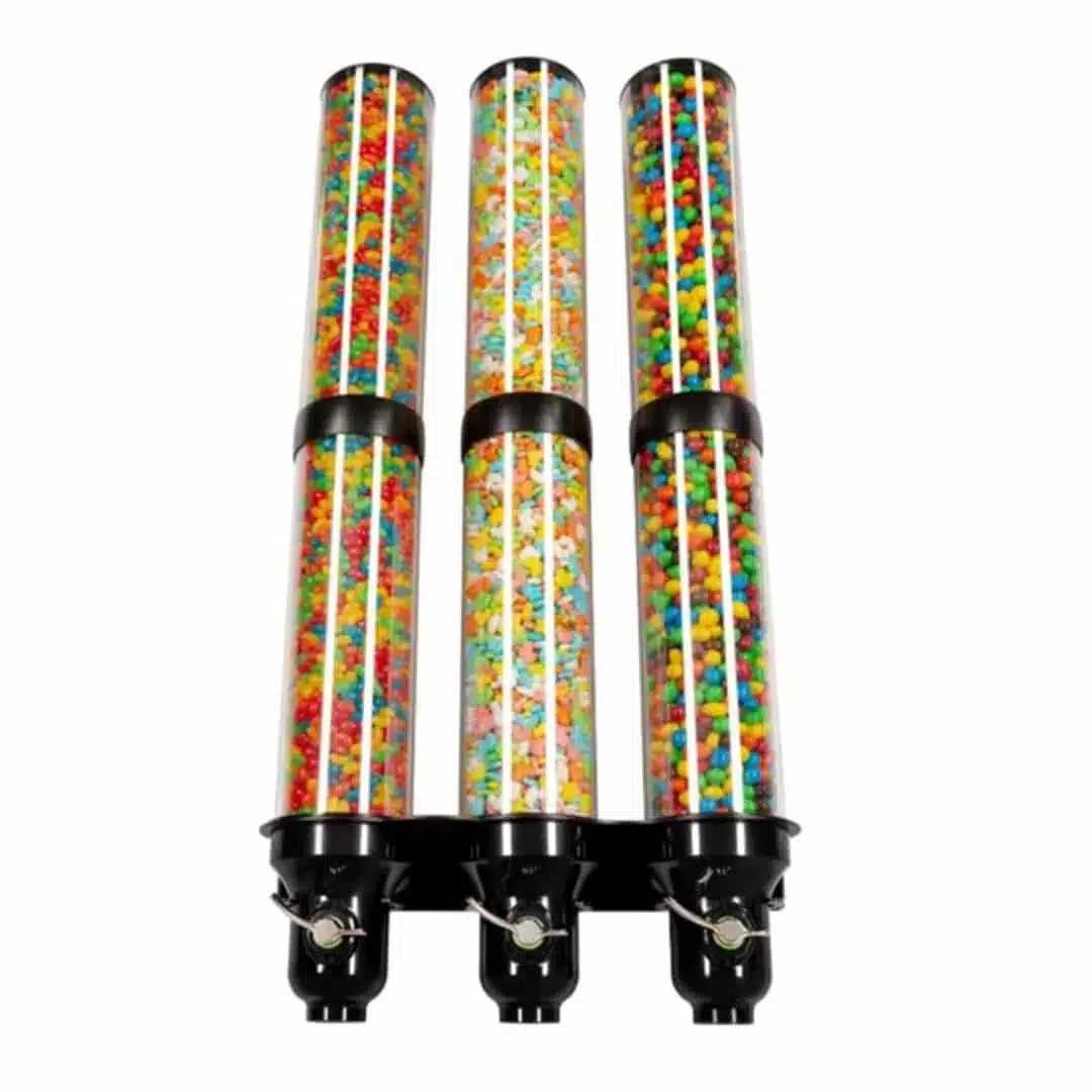 Distributeur d’aliments secs, 3 conteneurs SAN, convient pour la distribution de céréales, granola, légumineuses, noix, céréales, haricots, graines, grains de café, herbes, bonbons, pépites de chocolat, aliments pour animaux de compagnie, matériaux industriels.
