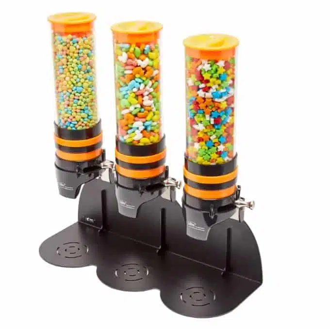 Distributeur de garniture et de crème glacée gamme Click Topping, idéal pour toutes sortes de céréale, granola, légumineuses, noix, pois, riz, etc…