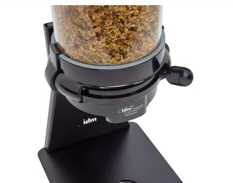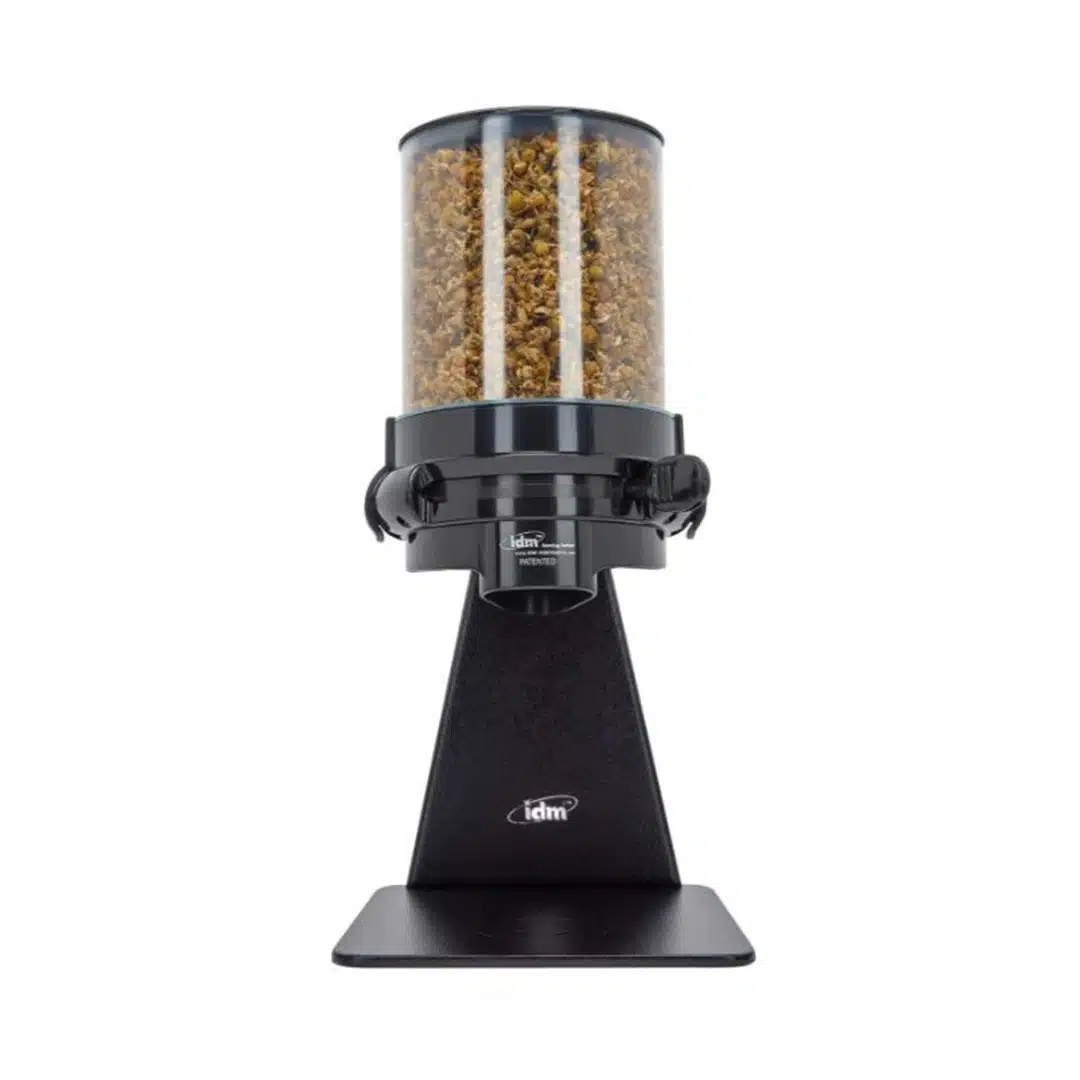 Livré avec un support en métal et un récipient ‘SAN’, ainsi qu’un couvercle et un entonnoir en ABS noir.