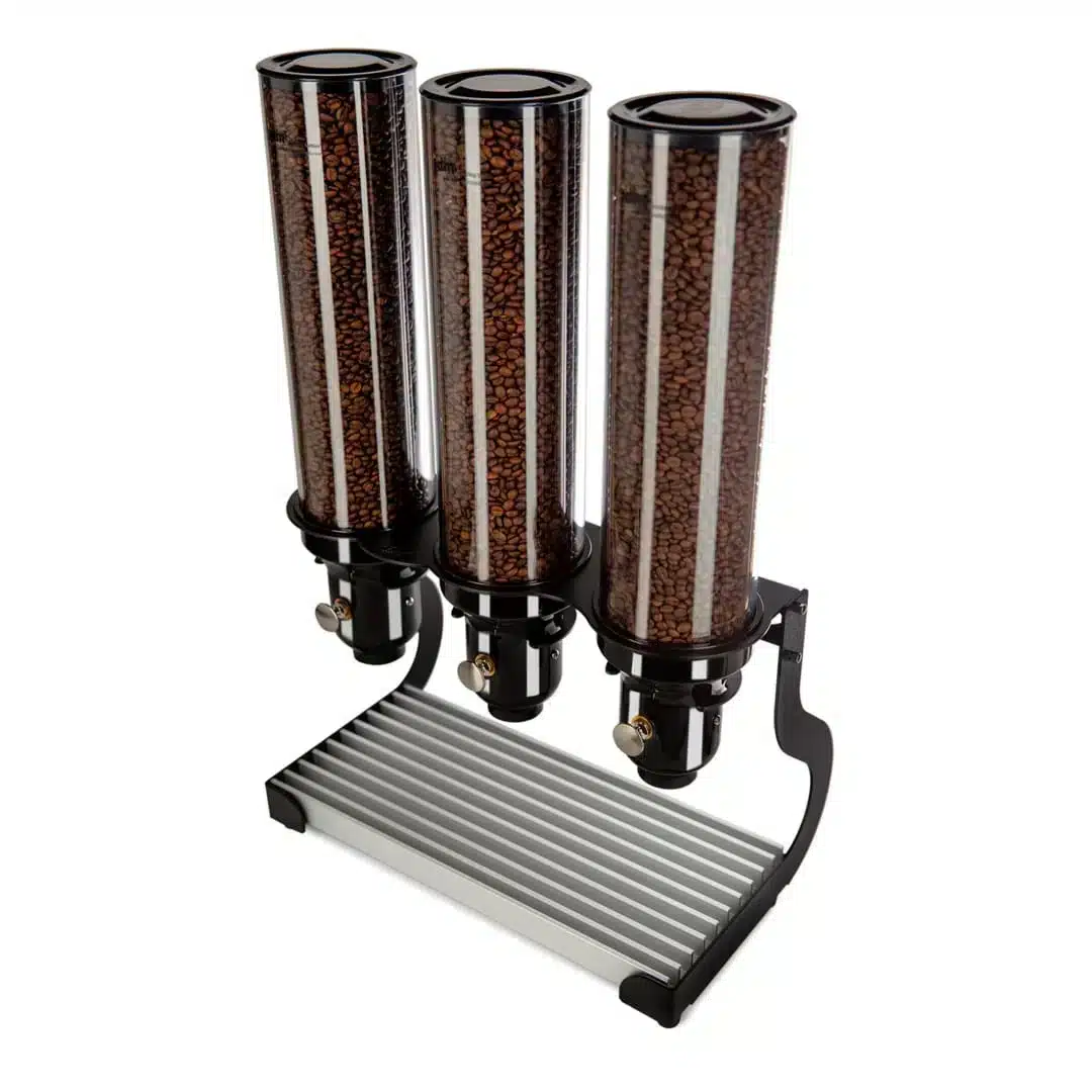 Distributeur de grains de café gamme « Supremo » 3 x 4.5 L noir, idéal pour tous types de grains de café, graines, céréales et autres.