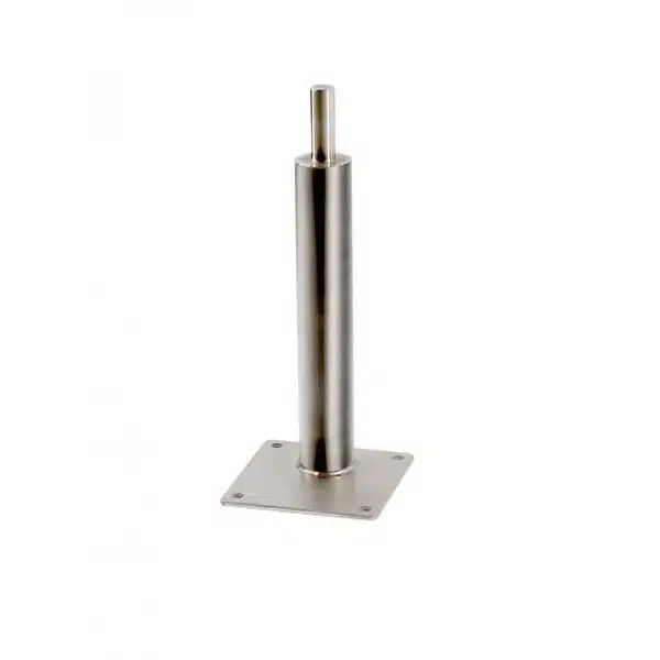 Platine à visser H 100 mm : Une platine à visser sur votre plan de travail. Résistant, en inox alimentaire, ce support permet d’installer votre distributeur rapidement et sans contraintes.