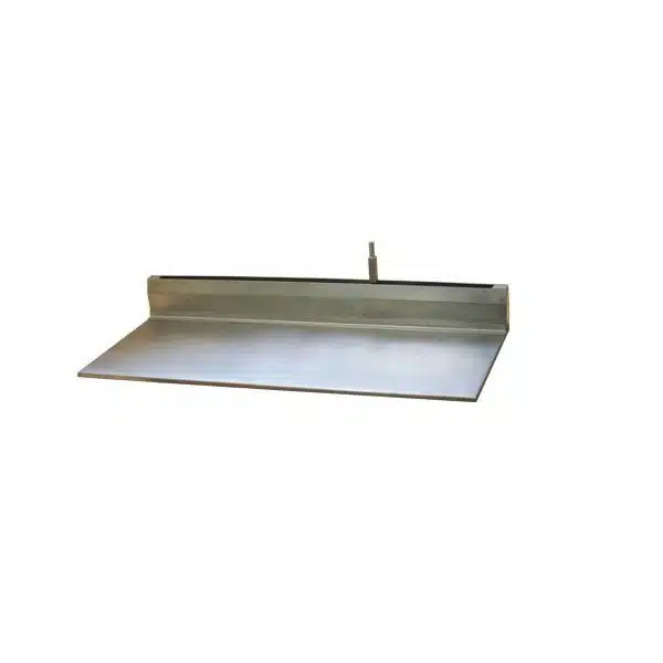 Plaque à poser 2C (1100 x 500 mm) : Un support haut de gamme proposant un socle pour 2 crêpières ainsi qu’un axe pour distributeur coulissant. Ce rail permet une translation sur 900 mm et d’alimenter les 2 crêpières avec un seul distributeur.