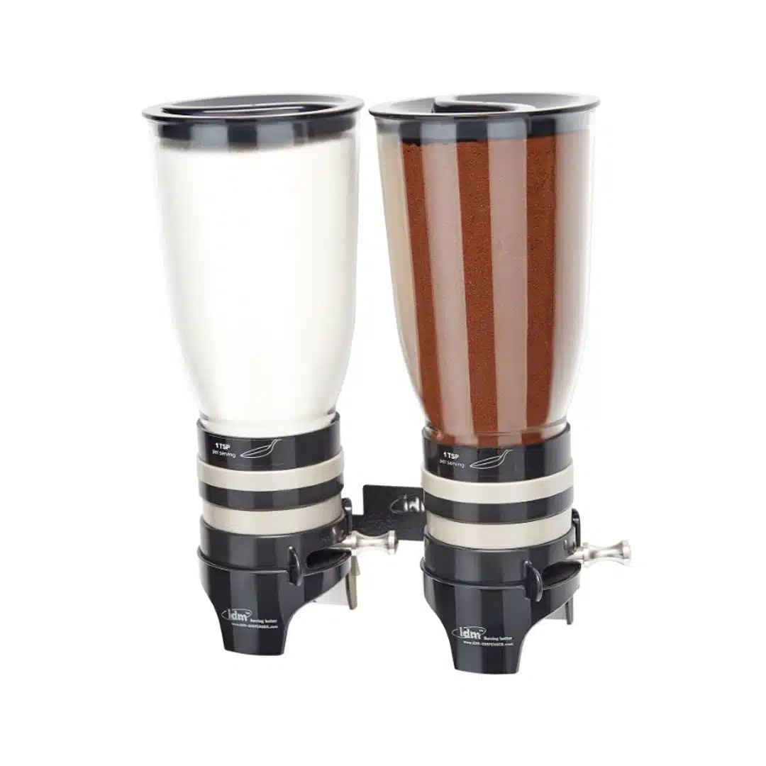 Distributeur de café soluble et sucres, simple, adapté à des produits en poudre tel que le café, café moulu, café instantané, sucre, crème, édulcorant, poudre de cacao, épices.