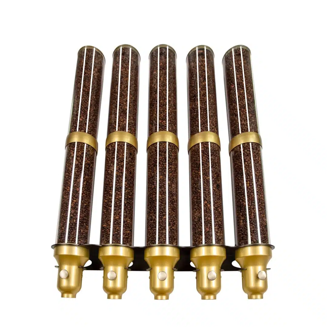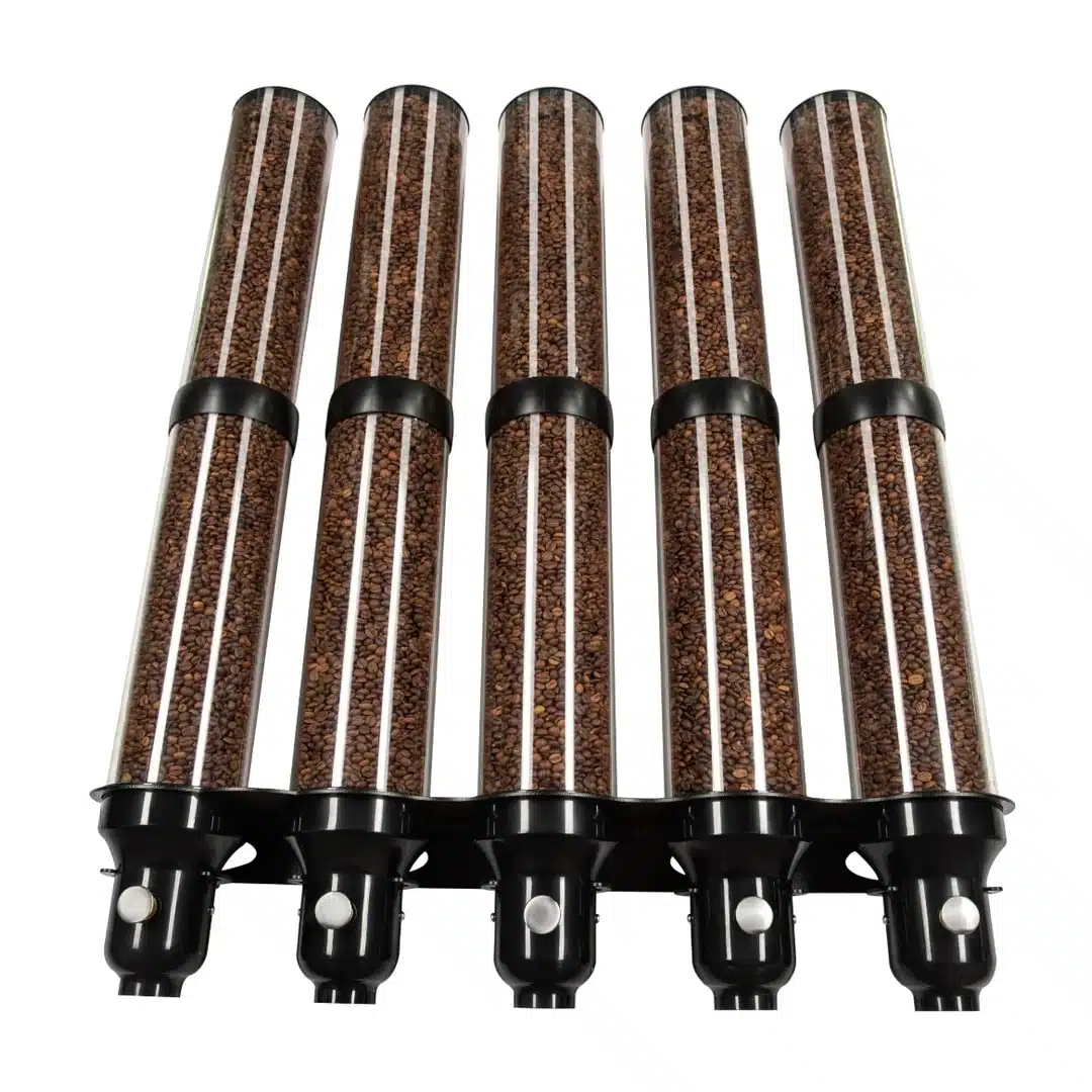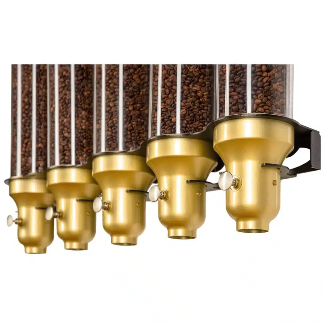 Distributeur de grains de café gamme « Supremo » 5 x 9 L, idéal pour tous types de grains de café, graines, céréales et autres.