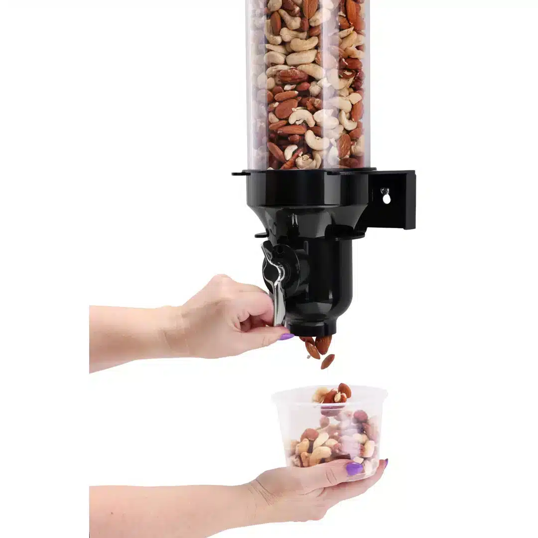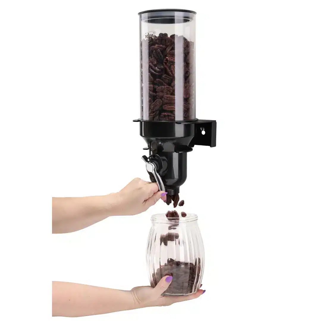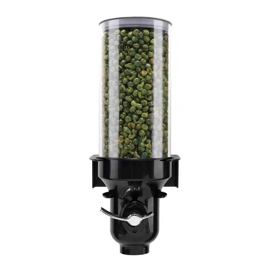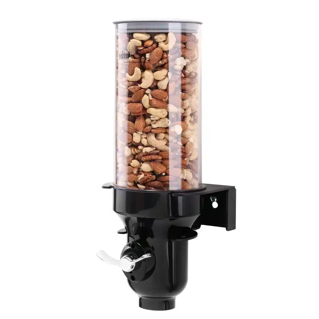 Distributeur mural de nourritures biologiques et sèches « Free Flow » noir 1 x 2.5 L, convient pour les céréales, granola, légumineuses, noix, céréales, haricots, graines, grains de café, herbes, bonbons, pépites de chocolat, aliments pour animaux, matériaux industriels.