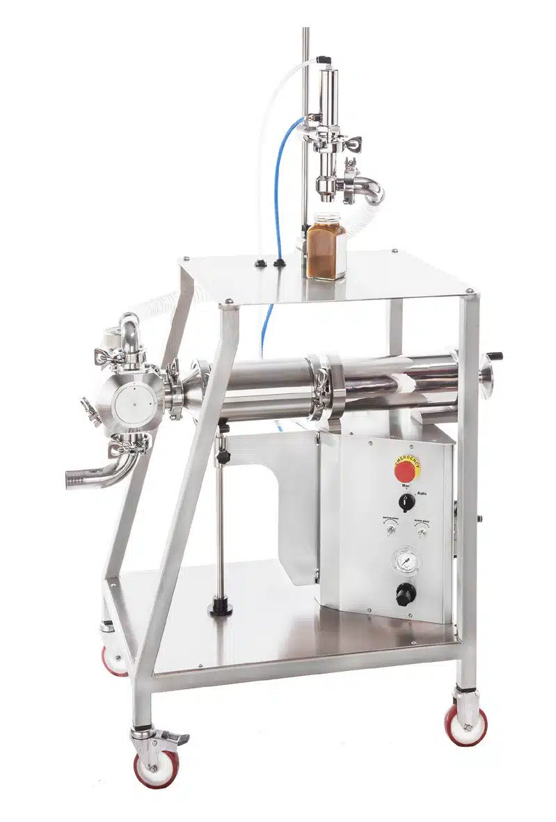 Doseuse volumétrique DSE-03 pour dosage CC 20-700, permettant de doser avec précision des produits de grande densité dans n’importe quel type de conteneur.