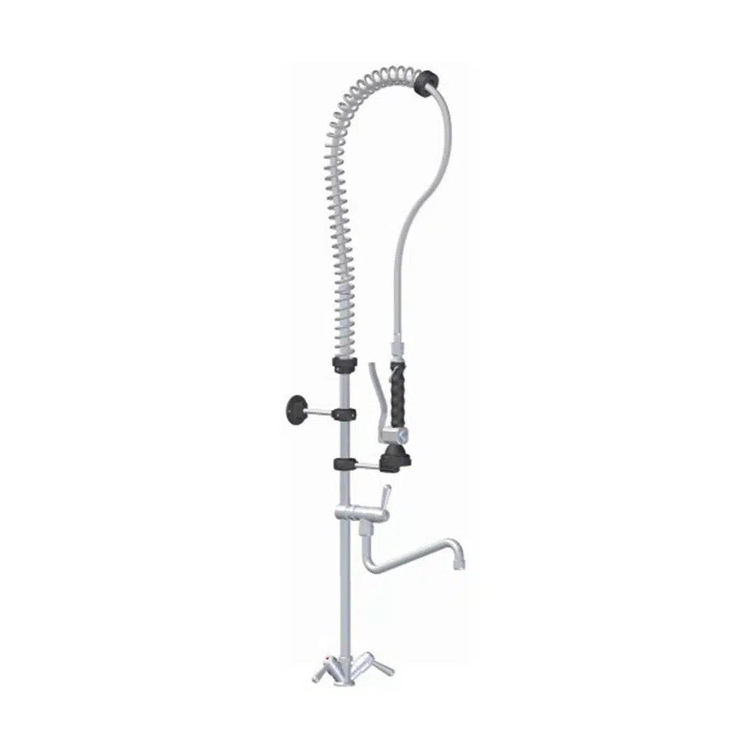 Douchette standard EC/EF monotrou, mélangeur avec leviers 1/4 tour, embout douchette RDCPFR, ressort inox, col de cygne.