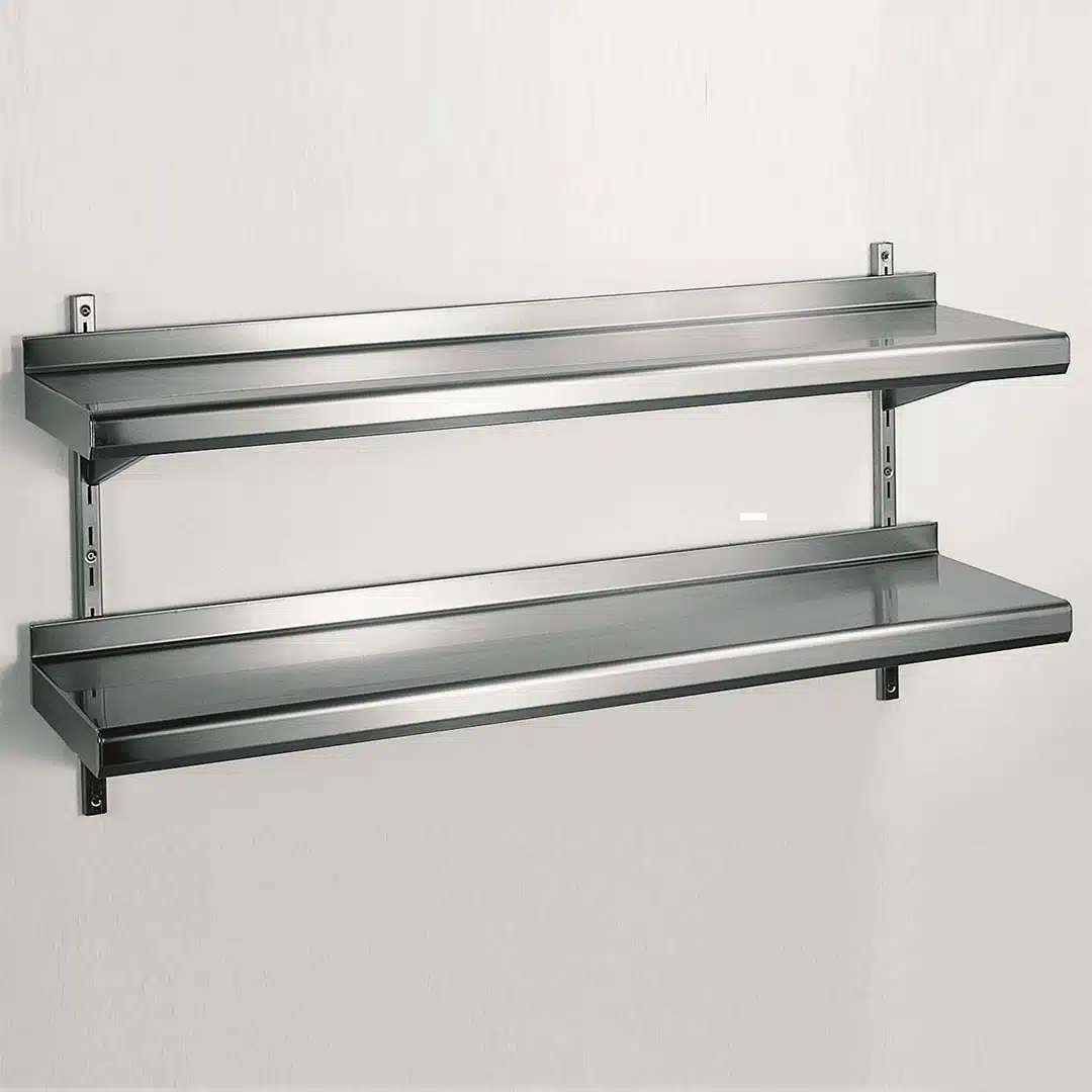 Étagère murale à crémaillère 2 niveaux en inox largeur 390 mm
