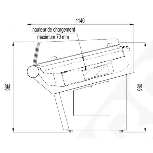 Etal à froid ventilé, libre-service avec groupe, pour vente de filets de poisson pré-emballés en libre.
