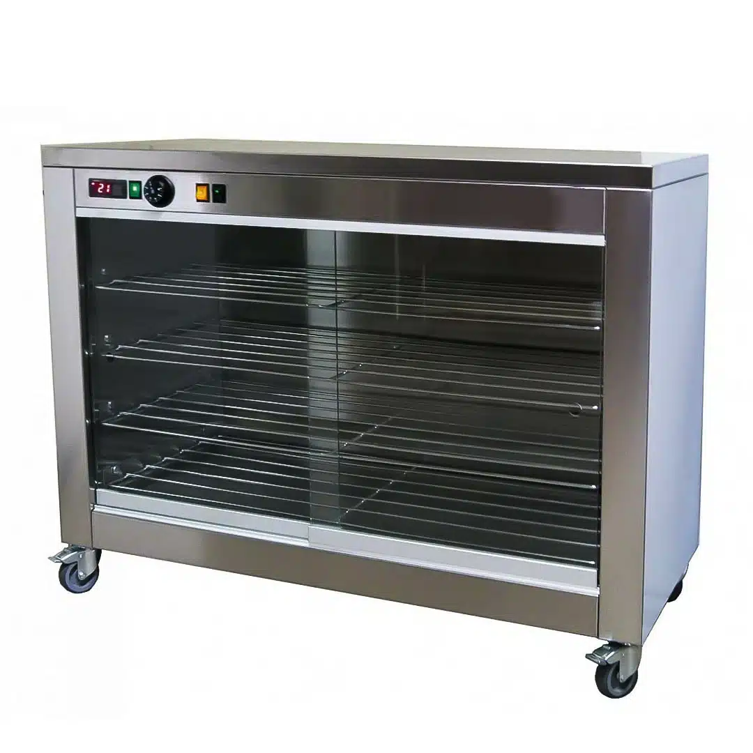 Etuve sur roulettes pour rôtissoires MAP 2, 3, et 4. Conçue pour une utilisation professionnelle, elle permet de maintenir vos préparations à la température idéale tout en offrant une visibilité optimale.
