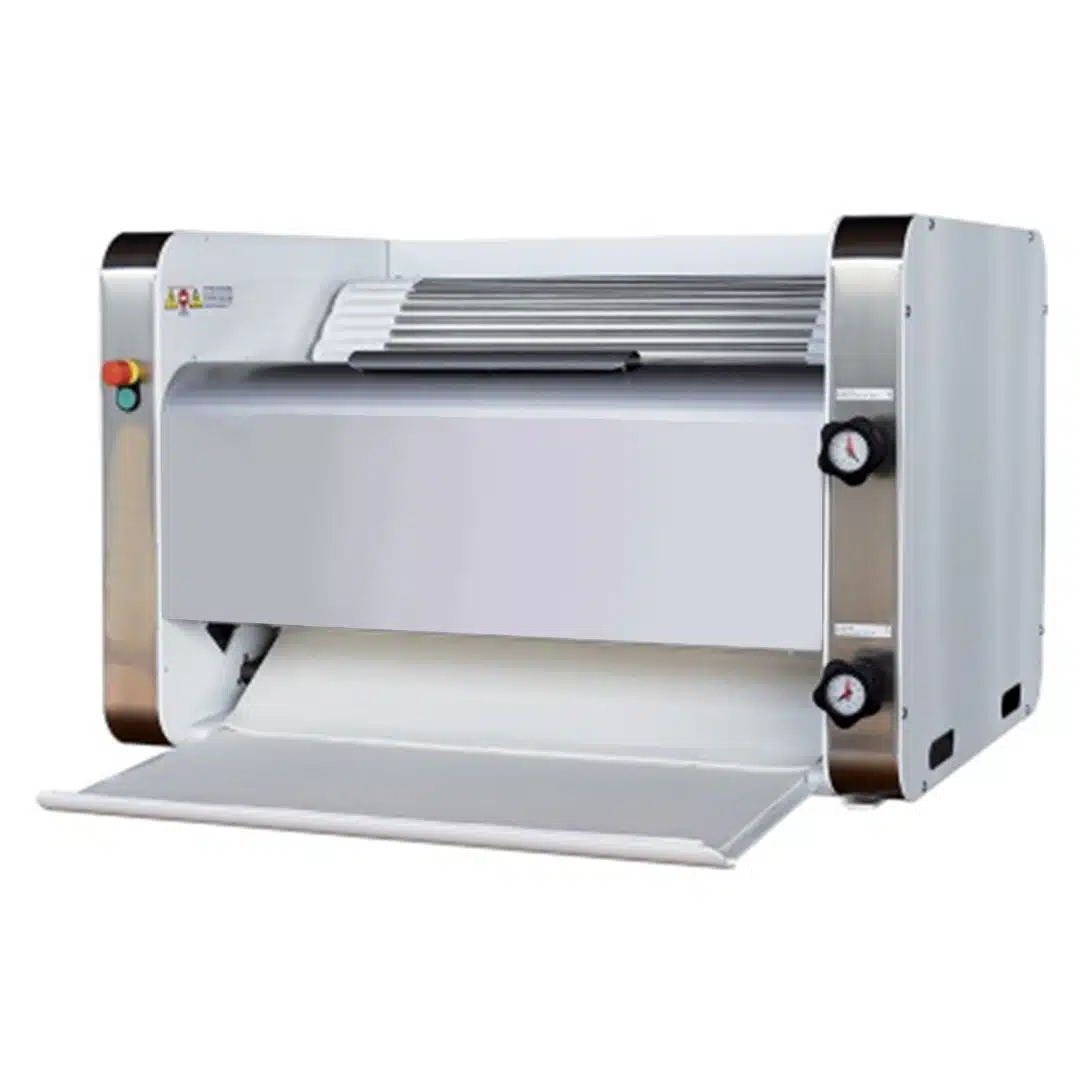 Façonneuse à poser sur table F14, compacte, robuste et intuitive, parfaite pour travailler des pâtons de différentes tailles, allant de 100 g à 3 kg, tout en assurant une qualité constante et une manipulation aisée.