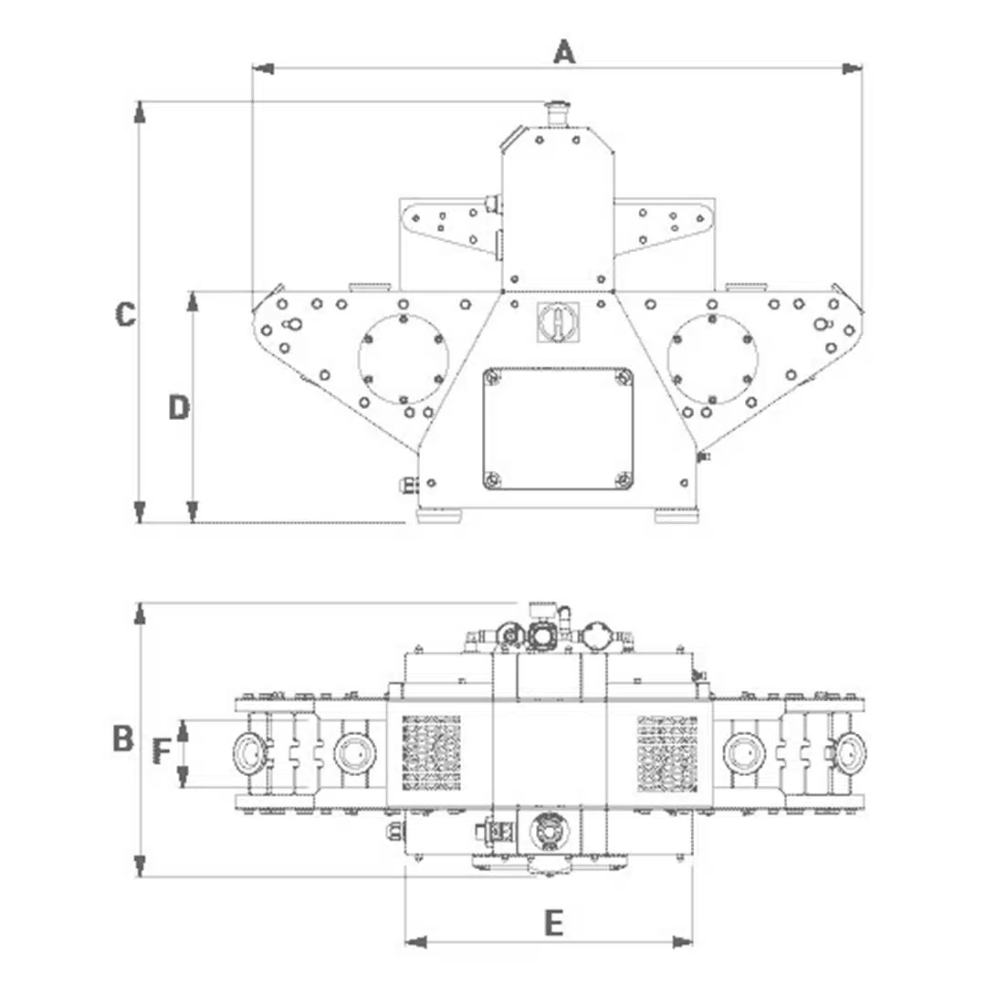 F 100 mm (3 15/16) - Température de la presse supérieure: MIN. 30 (86) MÁX. 60 (140) – OFF Temp. ambiante