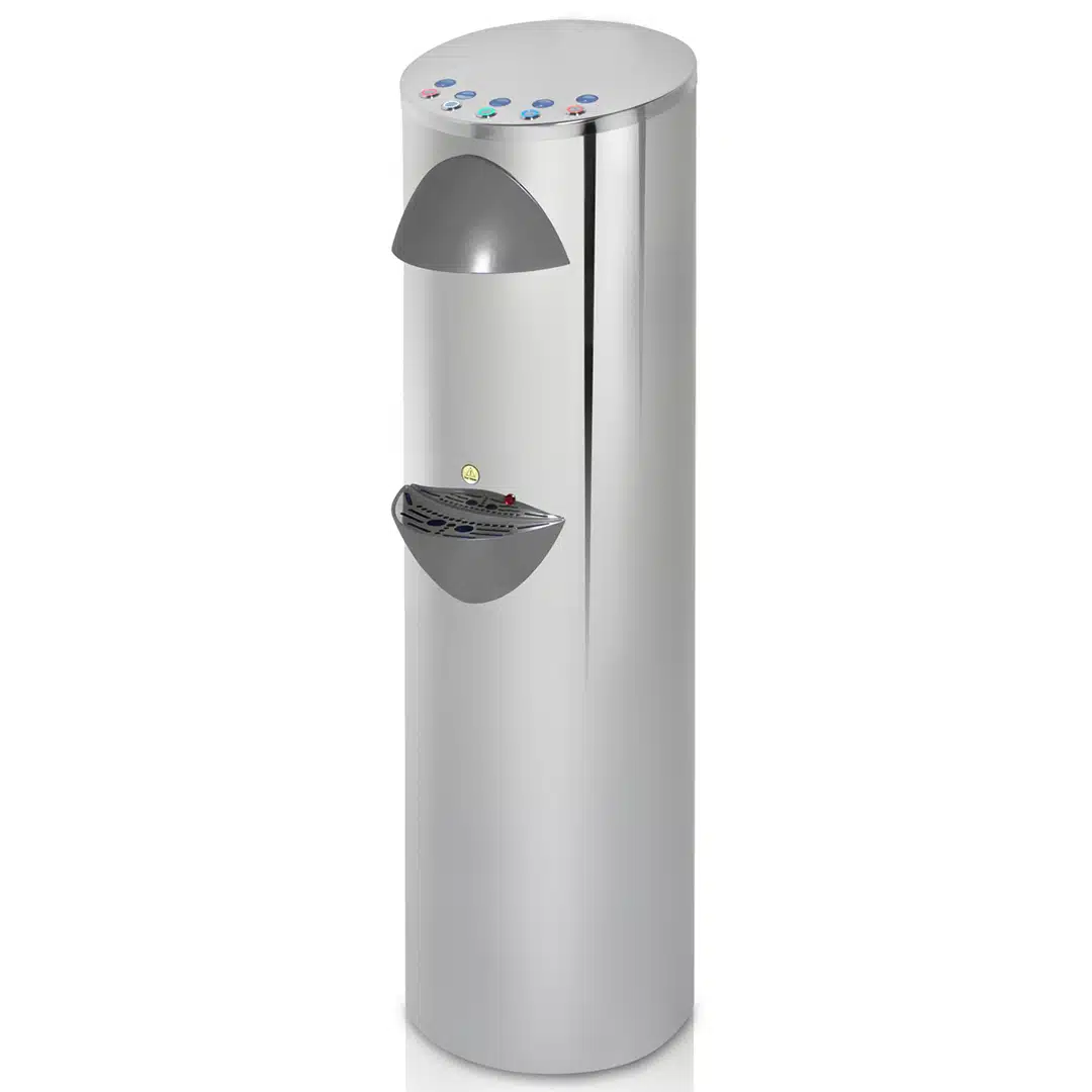 Fontaine à eau avec cinq boutons pour la distribution de l’eau froide, naturelle et d’eau pétillante.