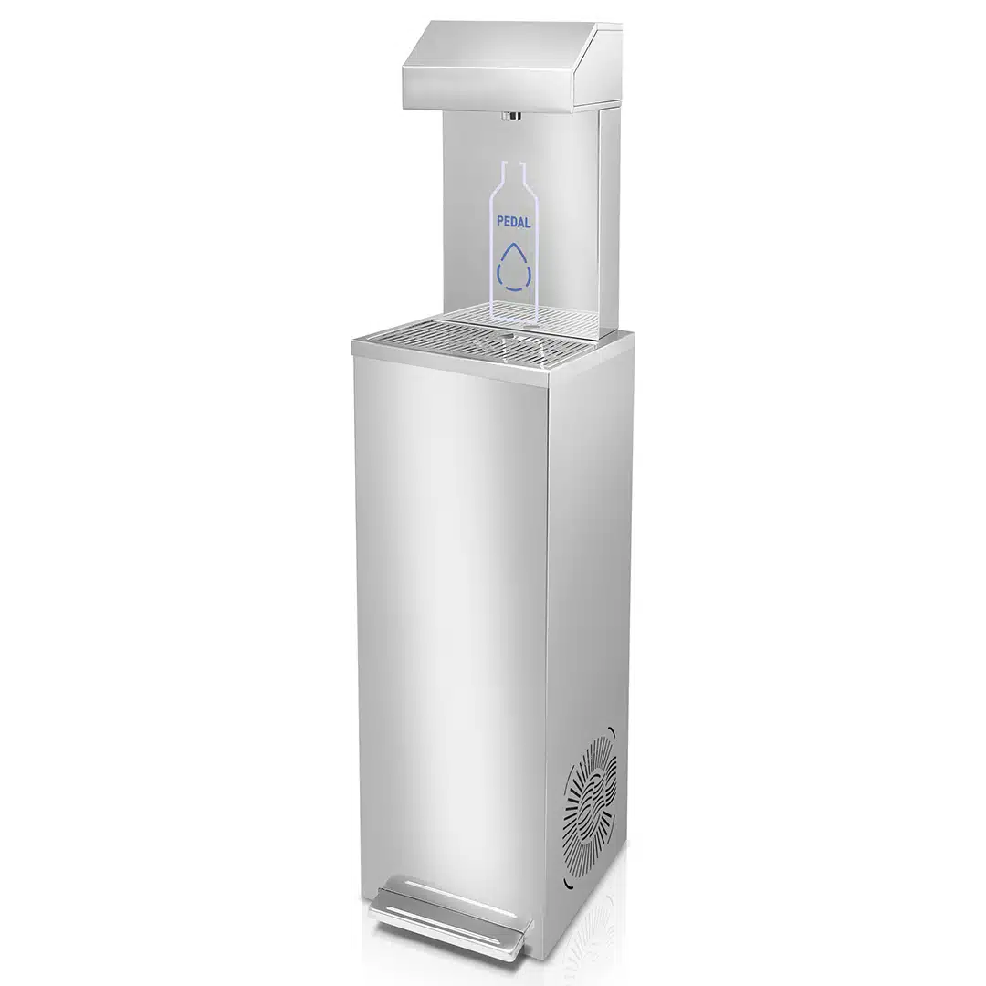 Fontaine à eau main libre, à haute capacité de refroidissement, idéale pour remplir différents types de bouteilles, solution hygiénique et anti-vandalisme.