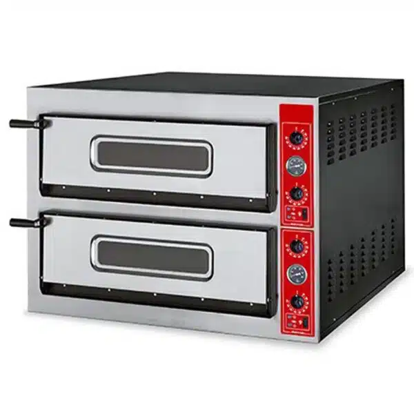 Four à pizza 2 niveau 2×4 pizzas, parfait pour réussir les plus belles pizzas fantaisistes ainsi que des délicats assiettes gastronomiques. Destiné aux professionnels de la restauration.