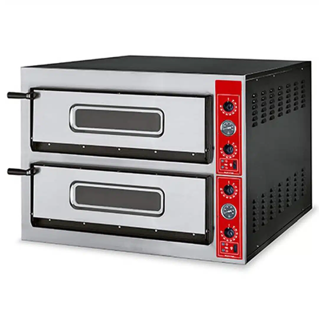 Ce four à pizza professionnel 2 niveaux 2×4 pizzas est conçu pour les cuisines à fort rendement, offrant une capacité de production flexible et une performance de cuisson optimale.
