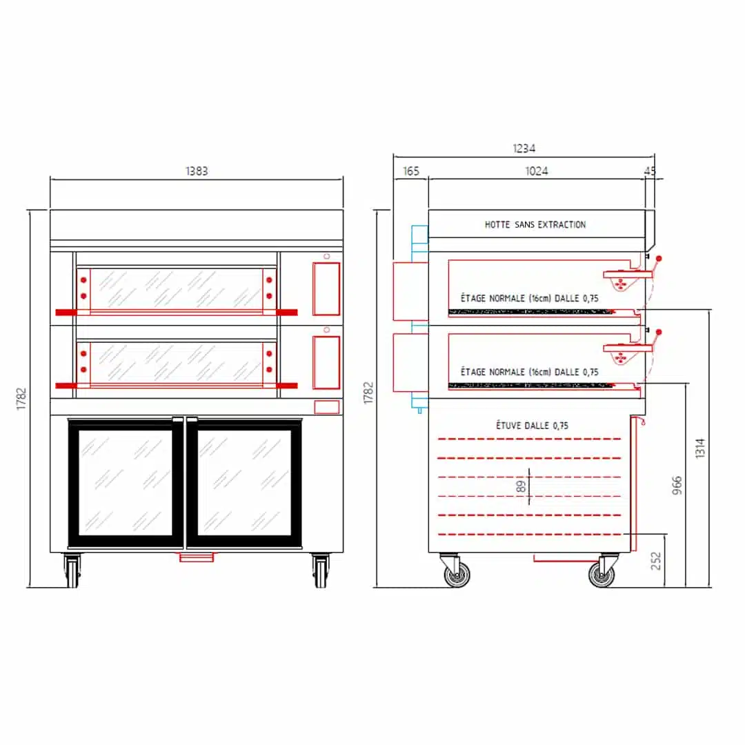 Four électrique Modulram avec 2 étages L 940 x P 750 x H 160 mm + hotte sans extracteur + étuve, sur mesure