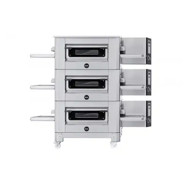 Four tunnel à convection professionnel, adapté pour différentes exigences de cuisson (pain, pizza, légumes, préparations gastronomiques).