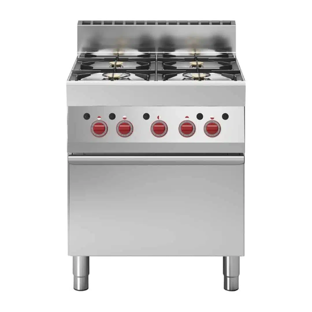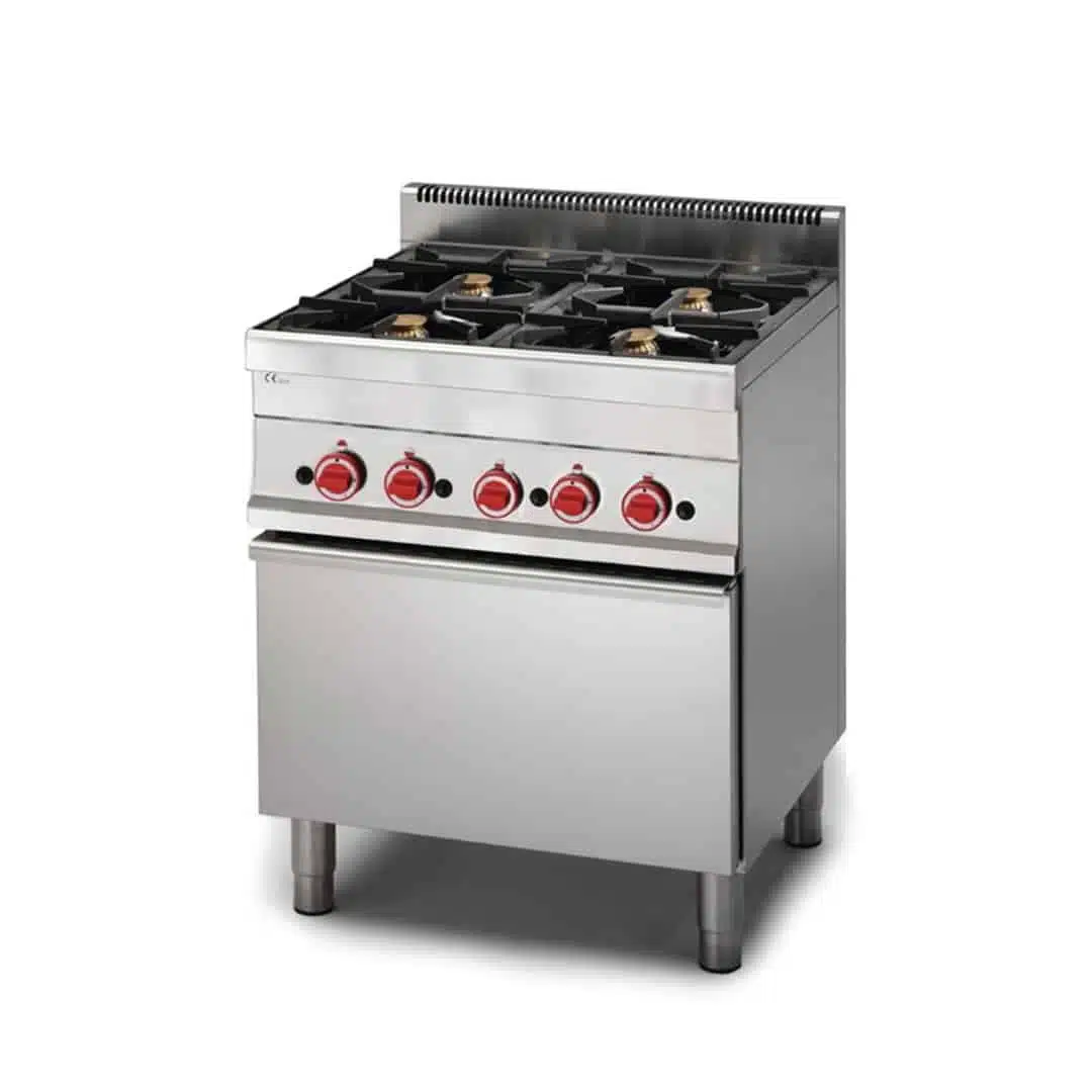 Fourneau 4 feux sur four gaz, robuste, performant et économique, il constitue un choix idéal pour les cuisines intensives.