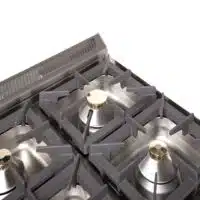 Fourneau 4 feux vifs gaz sur four gaz, permet de réaliser plusieurs préparations simultanément, idéal pour les professionnels de la restauration.