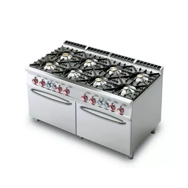 Fourneau à gaz professionnel 8 feux 73 kW, permet d’avoir une cuisson rapide, conçu pour répondre à vos besoins, destiné aux chefs de cuisine et professionnels de la restauration exigeant des performances élevées dans des environnements de cuisine commerciale.