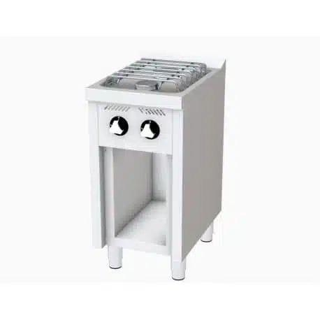 Fourneau à gaz professionnel, 2 feux, permet de réaliser plusieurs préparations simultanément, idéal pour les professionnels de la restauration.
