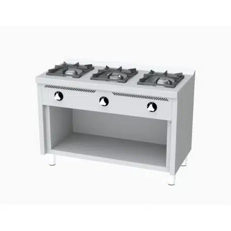Fourneau à sur placard, 3 feux, permet de réaliser plusieurs préparations simultanément, idéal pour les professionnels de la restauration.