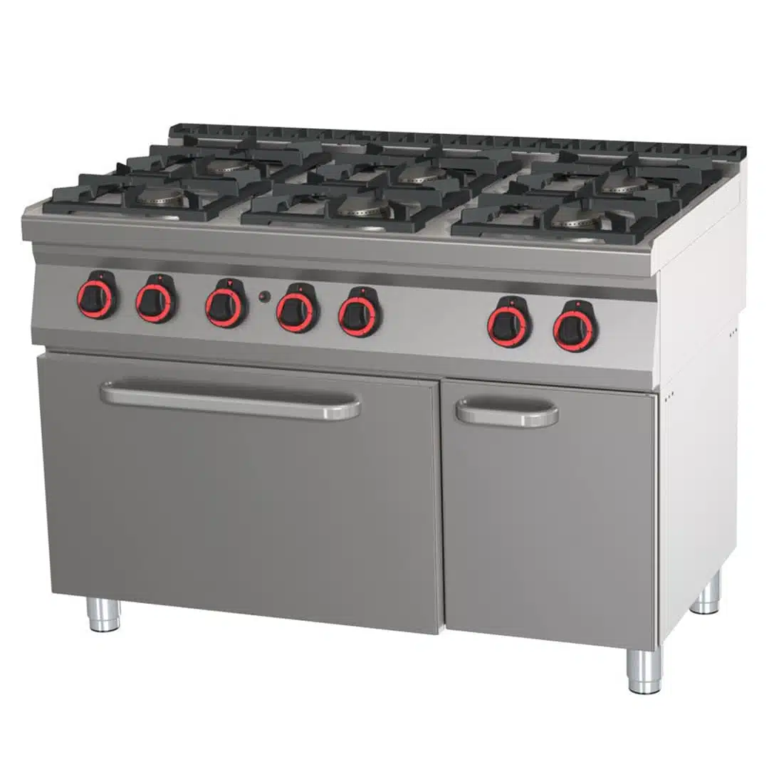 Fourneau à gaz professionnel 6 feux avec four électrique GN 2/1 et placard