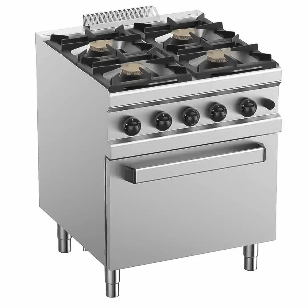 Fourneau gaz 4 feux vifs sur four à gaz, un équipement professionnel fiable, performant et pensé pour améliorer l’efficacité de votre cuisine.