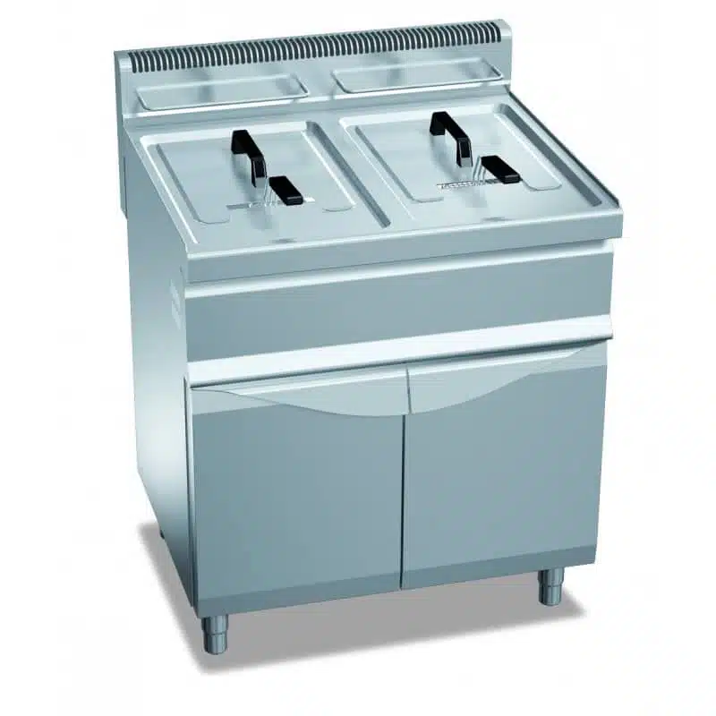 Friteuse à gaz sur coffre, façade en acier inoxydable AISI 304, 2 x 20 litres