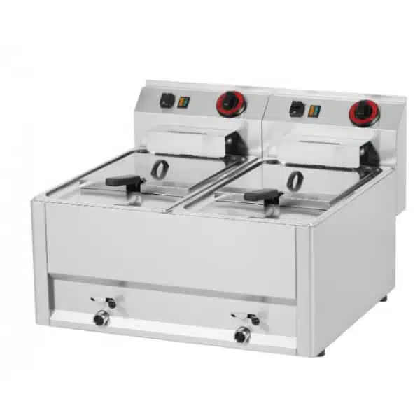Friteuse de table électrique tri 400 V avec vidange double 2 x 8 L
