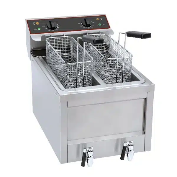 Friteuse gros volume électrique avec vidange 2 cuves 2 x 8 L