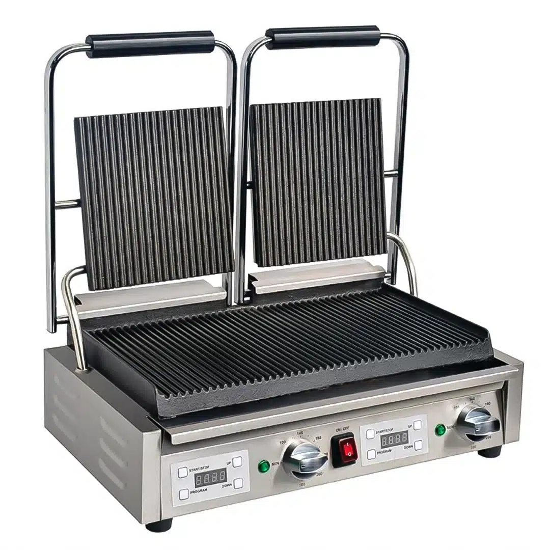 Panini grill avec timer double premium rainurée – rainurée en inox 2900 W