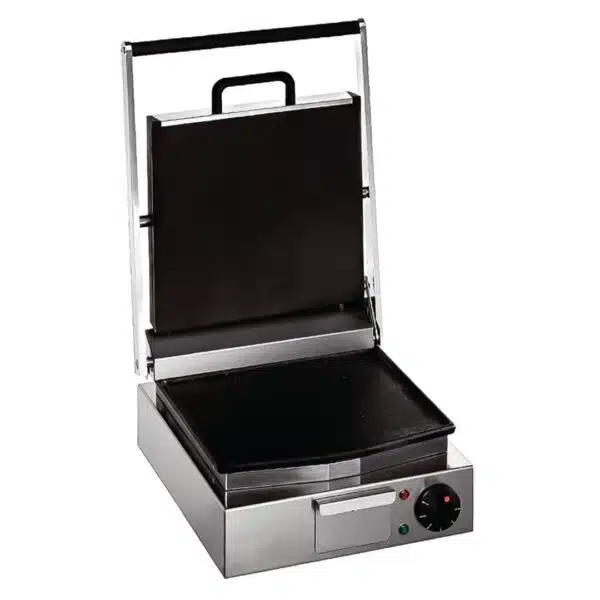 Gril contact/panini simple, parfait pour les professionnels exigeant rapidité et efficacité.