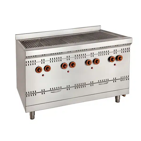 Grill professionnel à gaz, parfait pour griller tous les types de viandes et poissons simultanément, rapide et polyvalent, avec une excellente présentation des aliments, sans mélanger les saveurs.