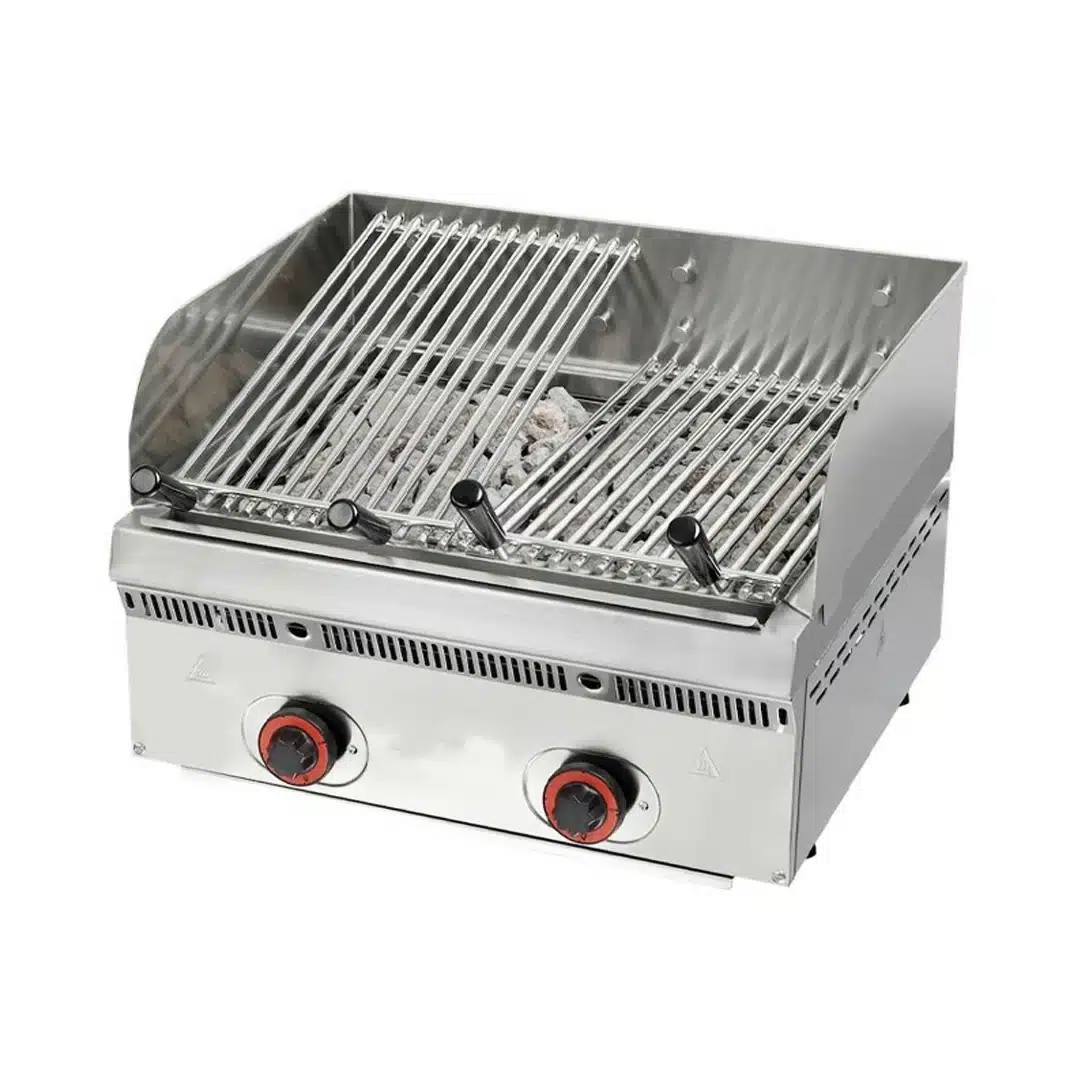 Découvrez notre grills gaz inclinable professionnel à pierres volcaniques réfractaires, conçu pour les cuisines des hôtels, restaurants et cafés (CHR). Ce grill de haute performance offre une cuisson homogène et précise grâce à ses deux zones de chauffe indépendantes. Idéal pour les chefs exigeants, il est équipé de fonctionnalités avancées pour une utilisation optimale.