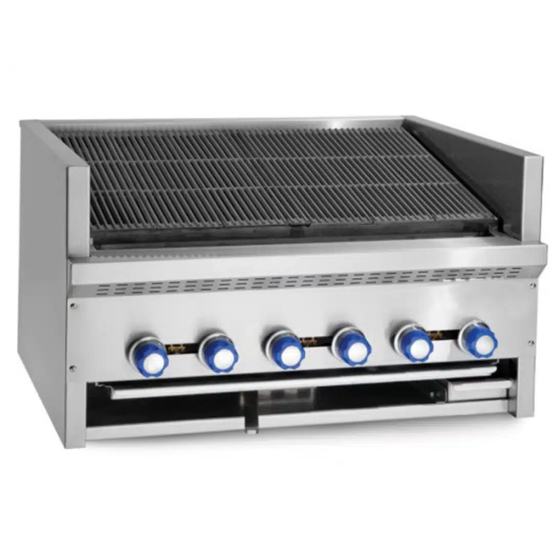 Conçu pour répondre aux exigences les plus élevées de la restauration professionnelle, notre grill Charcoal professionnel 3 positions offre une combinaison parfaite de puissance, de polyvalence et de durabilité. Grâce à ses 2 brûleurs de 12 kW et à ses grilles de cuisson réglables en 3 positions, il vous permet de maîtriser toutes les techniques de cuisson : grillades, plancha, cuisson à la vapeur… Sa construction robuste en acier inoxydable et son isolation thermique garantissent une longue durée de vie et des économies d’énergie. Les boutons de commande ergonomiques et le bac de récupération des graisses facilitent l’utilisation et l’entretien. Certifié CE, NSF et CGA, ce grill est un investissement sûr pour votre cuisine professionnelle.