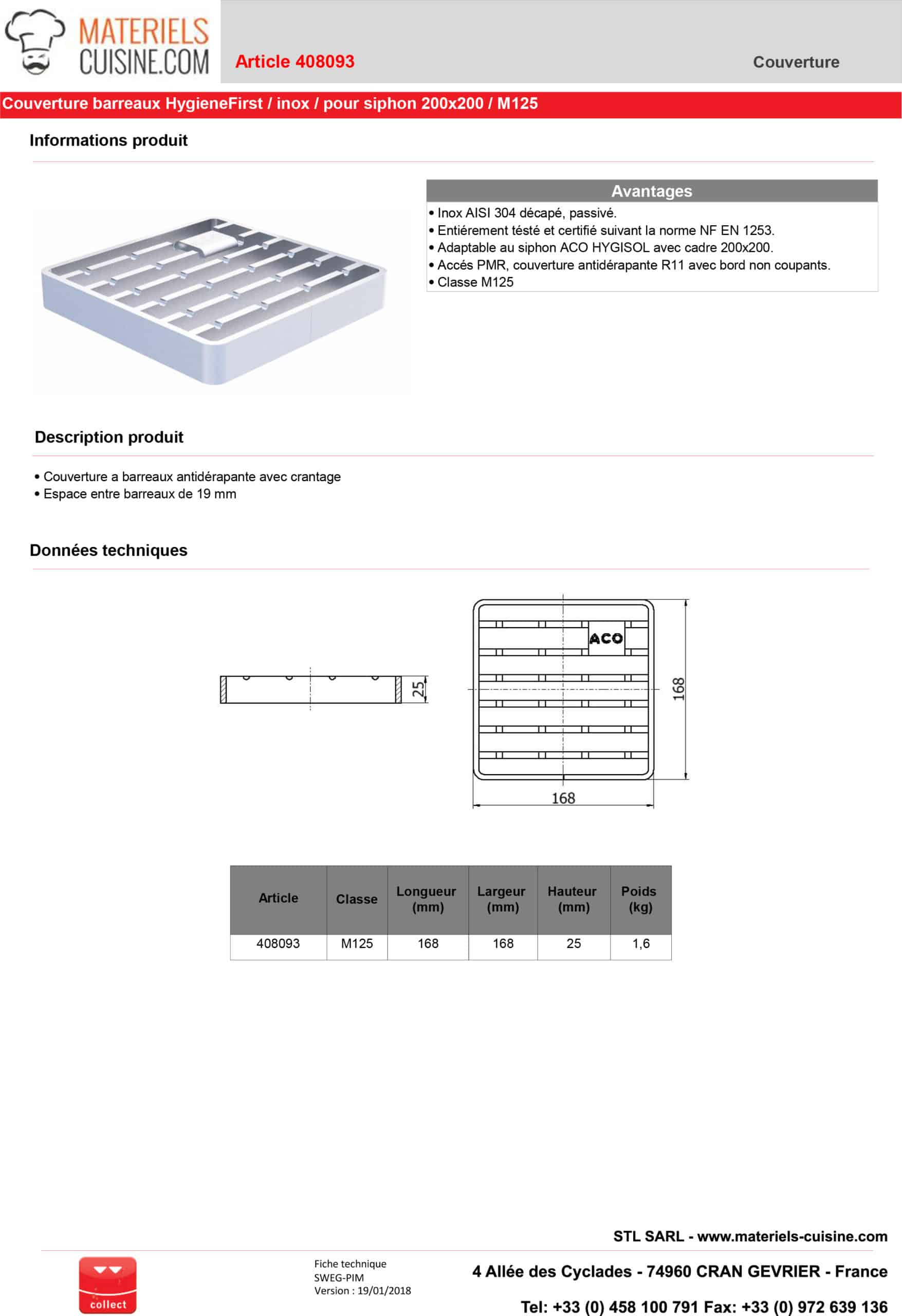 Adaptable au siphon ACO HYGISOL avec cadre 200×200.