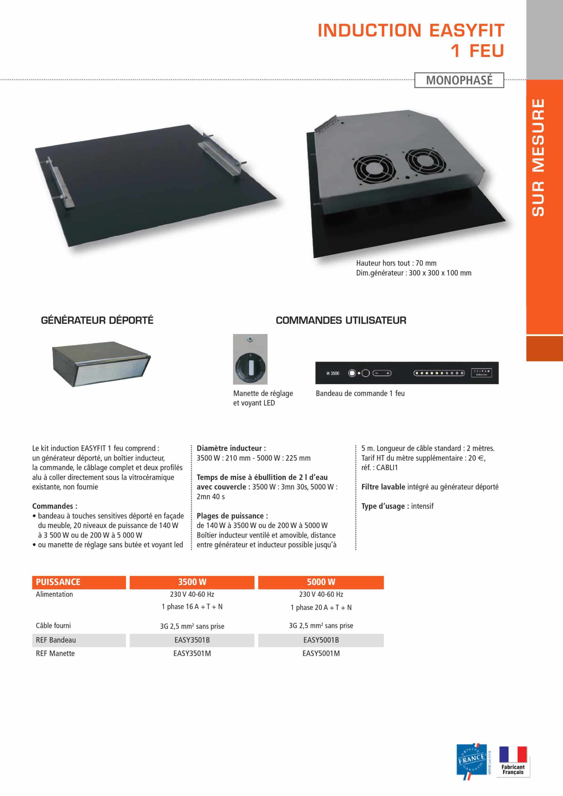 Induction EASYFIT 1 foyer sous vitro existante, puissance 3500 W