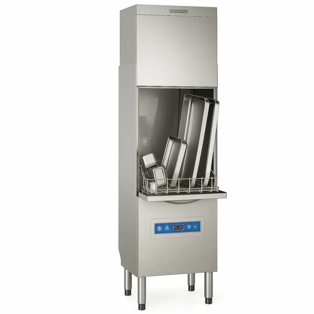 - Efficacité de Nettoyage : Grâce à ses bras de lavage et de rinçage rotatifs en inox, le LB 850 assure un nettoyage en profondeur et rapide de vos batteries de cuisine.