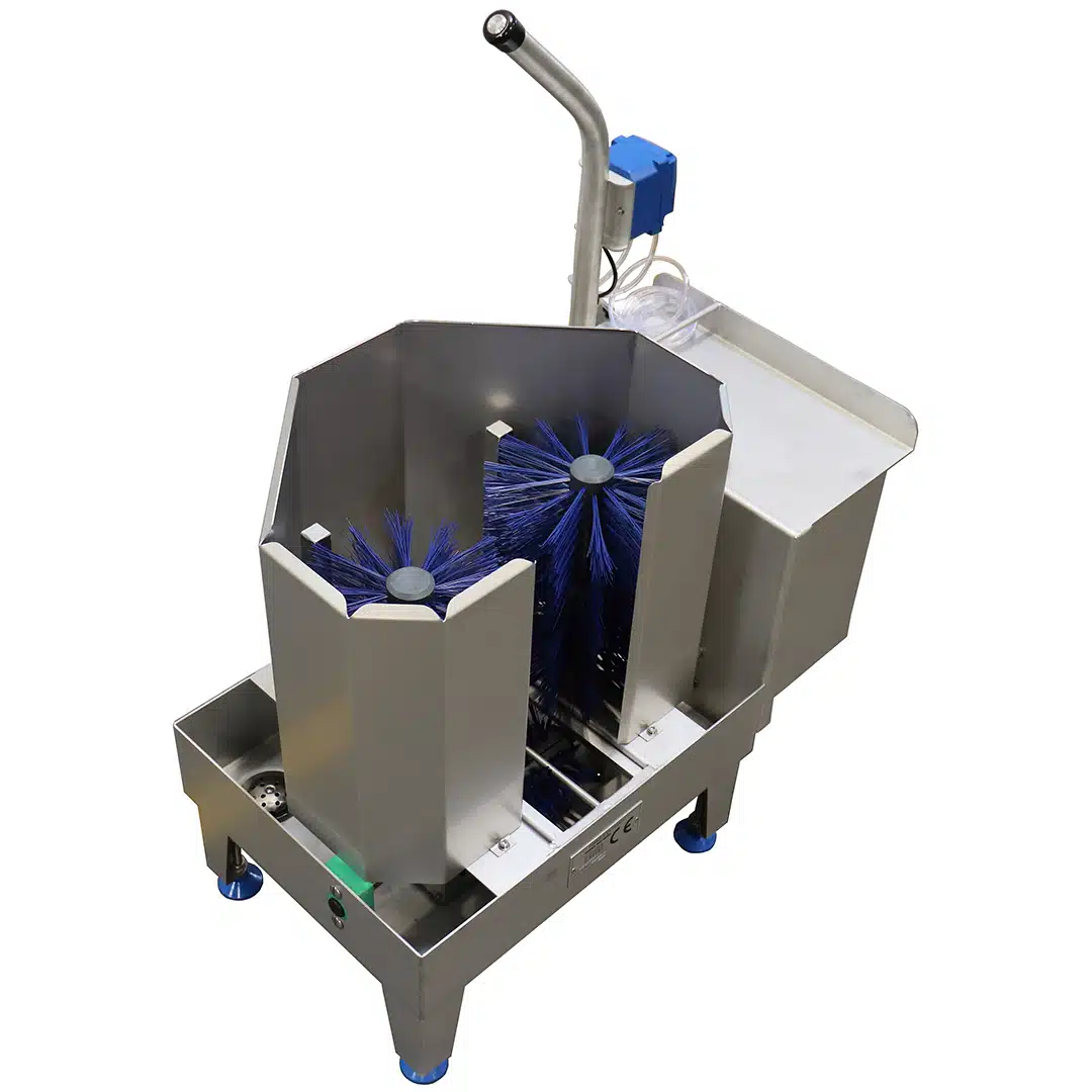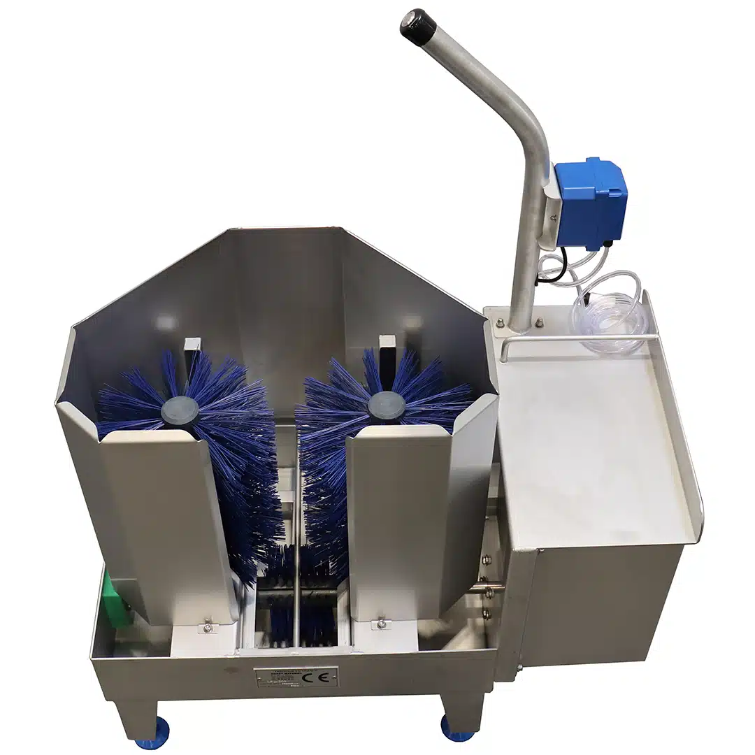 Lave-botte électrique ECO, permet d’assurer le nettoyage et la désinfection des bottes (tiges et semelles) grâce à 3 brosses rotatives.