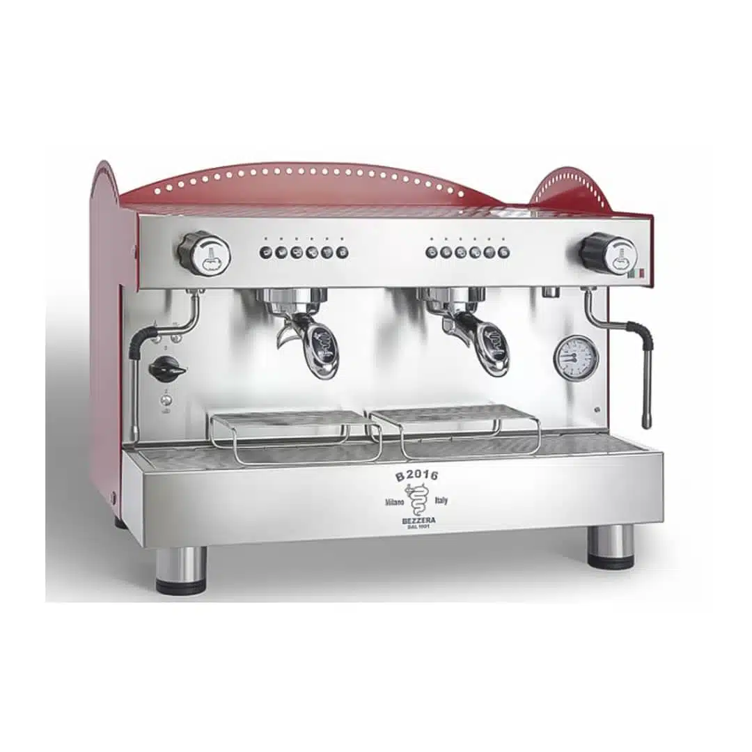 Machine à café espresso B2016 DE 1 Groupe, conçue par BEZZERA, l’exemple parfait d’une machine alliant tradition et innovation pour répondre aux besoins des professionnels exigeants. Couleurs disponibles : Acier inoxydable, Blanc, Noir mate, Rouge.