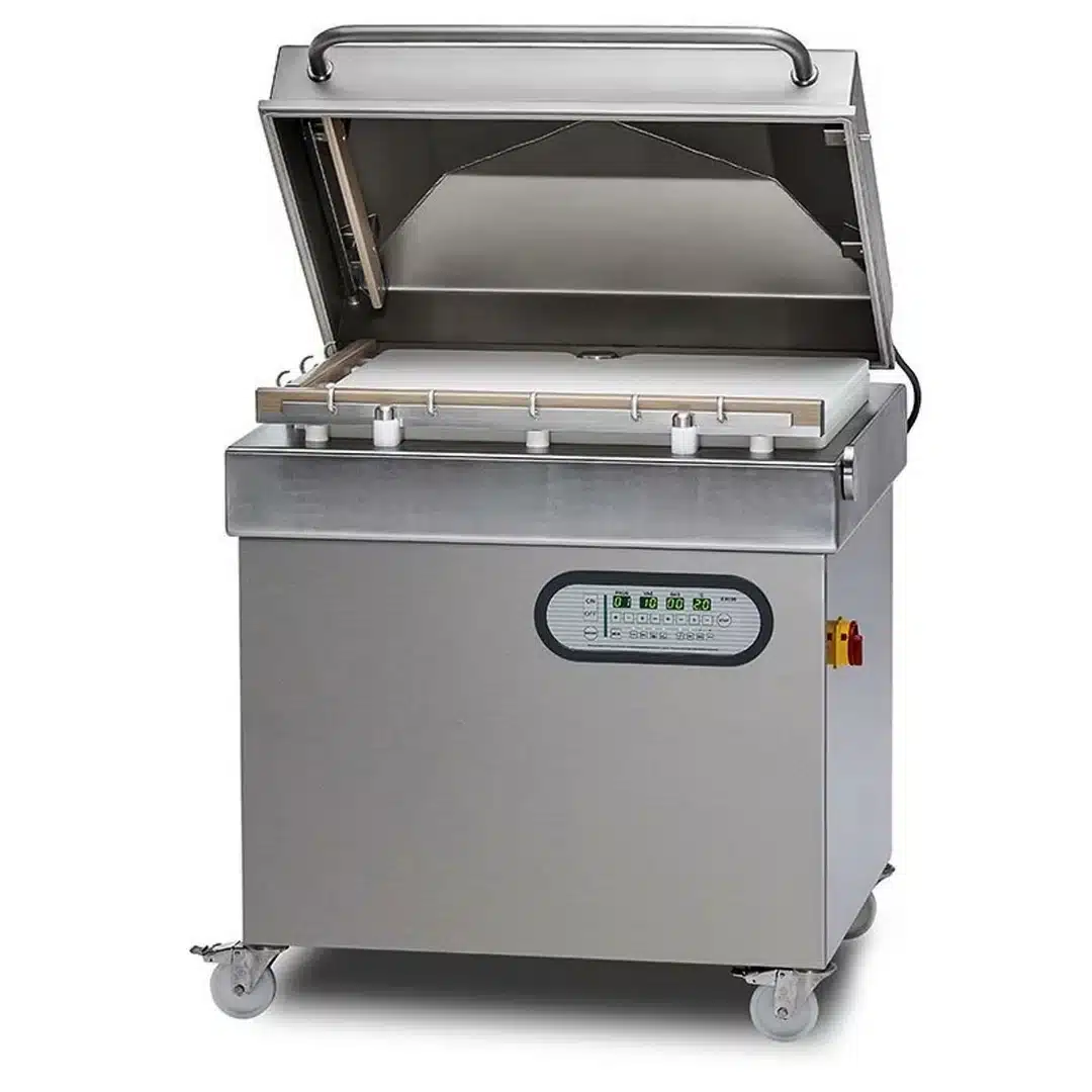 Machine a emballer sous vide industrielle modèle TITAN F800U100, dotée d’une capacité de 100 m³/h. Conçue pour les professionnels, elle assure un emballage rapide et efficace, préservant la qualité et la fraîcheur de vos produits.