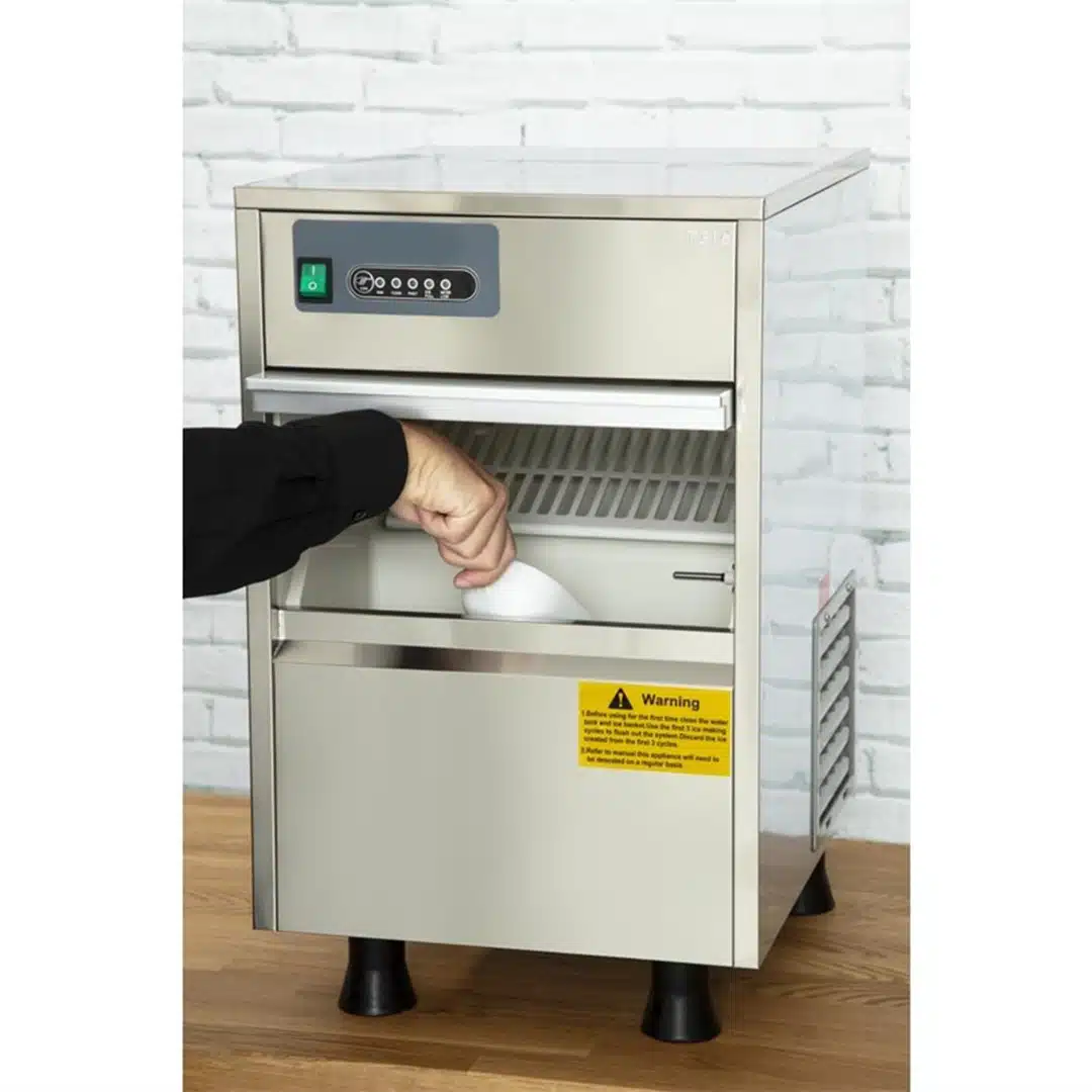 Avec une capacité de production atteignant 20 kg de glaçons en 24 heures, cette machine répond parfaitement aux besoins des pics de demande. Son bac intégré, d’une capacité de 4 kg, permet de stocker les glaçons prêts à être utilisés immédiatement. Cependant, il est important de noter que le bac n’est pas réfrigéré. Il est donc conseillé de retirer les glaçons régulièrement pour garantir leur fraîcheur.